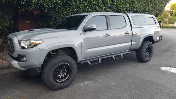 2020 Toyota Tacoma 4x4 Crew Cab Long Bed. Under Full Warranty Through 2028 Or 150,000 Miles. New tires and wheels, Bilstein shocks and suspension all around, Running boards, custom steel rear bumper with full size spare, Leer cab high camper shell with racks, power everything!