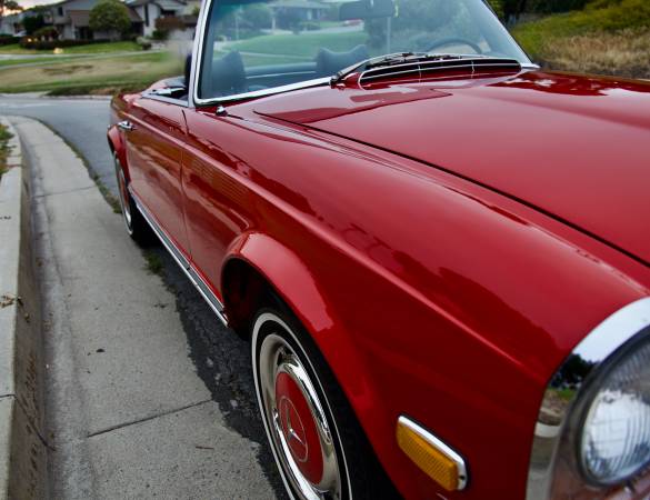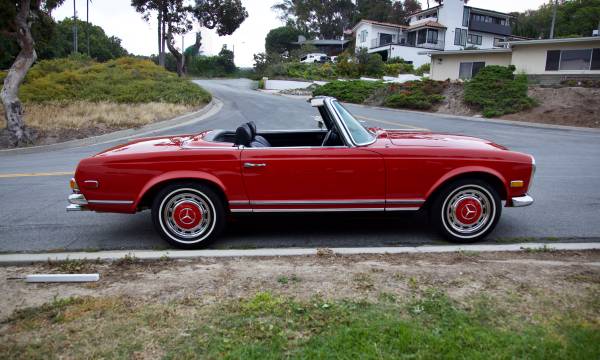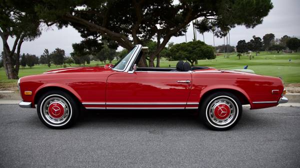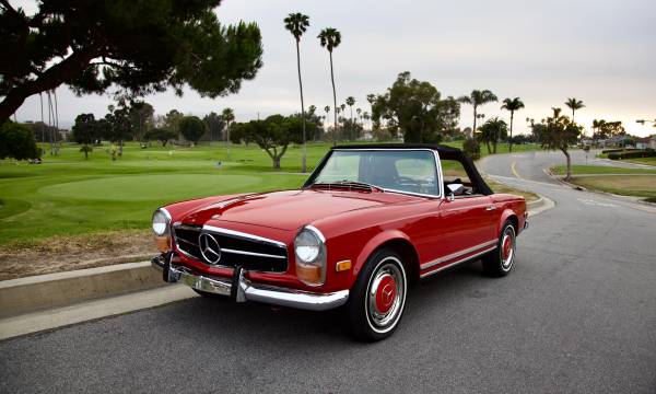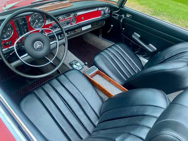 This 1970 Mercedes-Benz 280SL was purchased new and spent its life in Southern CA since 1969. The current owner acquired the car in 2013 and has reupholstered the cabin, fit a new soft top. the engine includes a four-speed manual transmission, a new black convertible top, a removable hardtop, four-wheel power-assisted disc brakes, power steering, and air conditioning. This W113 Pagoda is now offered on behalf of the owner with a clean California title.