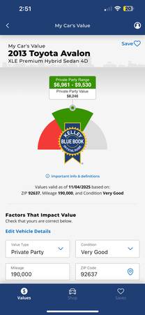 1 owner ✅ Clean title ✅ Clean carfax ✅ Smoged and ready ✅ Toyota Avalon Premium Hybird 190k miles, but these cars drive very well into 300k. This car went to Toyota Dealership of Orange for all the...