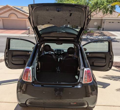 Very clean 2017 Fiat 500e black on black with high-end Alpine touch screen stereo, Android Auto and Apple Car Play and backup camera. BlackVue dash cam recorder with rear camera.