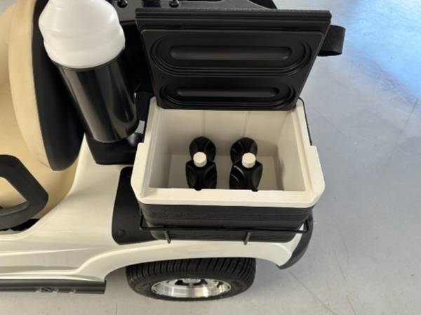 - Comes with 2 coolers and 2 sand bottles, one on each side, golf bag holder
