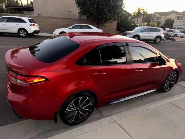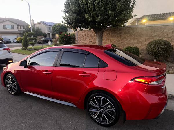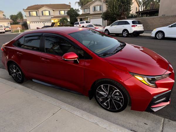 Ready to sell my super clean 2020 Toyota Corolla SE pkg sedan. Exterior color is red. Exterior is in excellent condition. Vehicle has clean title. Selling with title in hand. Smog check just completed. The Toyota engine size is 2.0 liter four cylinder engine that gets great gas mileage and has great power. Vehicle has 170k miles. Vehicle has like new tires. Like new brakes. All maintenances are up to date. All services has been completed. No mechanical issues. No oil leaks. Vehicle interior color is grey. Interior would be considered excellent condition. Almost 30 documented service records. No rips in the material. Interior has no odors. Vehicle has never been smoked inside of. Pet free interior. Inside and out the Corolla is a 9 out of 10. Selling with 2 master keys. Options : Automatic, upgraded Toyota audio system am/fm/cd/aux radio, cloth interior, tint windows, back up camera, rear spoiler, cruise control, power windows, power door locks, AC and heater which works perfectly, blue tooth and tons of safety features. Service records available upon request. Maintenance records available upon purchase. Selling for 11,500 o.b.o. Call or text for availability Nine Zero Nine-870-8702.