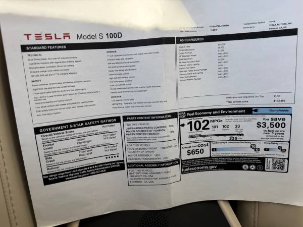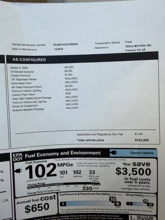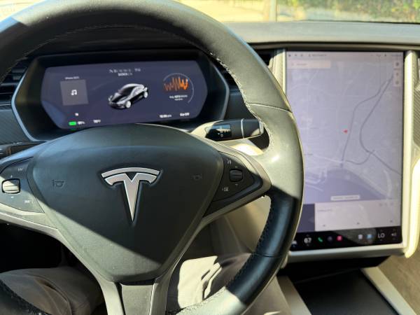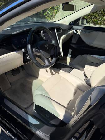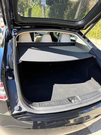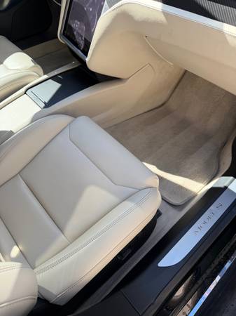 This black beauty has it all. Light cream leather interior (stays cool in heat) and privacy glass. Enhanced Auto Pilot and glass sun roof with 100D super long range battery pack. Amazing upgraded audio sound and voice command navigational. Only 51K miles unbelievable low miles. Try to find one with less miles, I dare you. Corners like a dream and the all wheel drive moves so fast and smooth. Carbon fiber interior is so fine. The hatchback is surprisingly roomy especially when rear seats are down. Come see drive this super charging sedan.