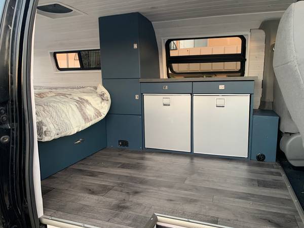 * Went the extra mile with rubber matting installed on all floors/walls for better sound, 3M thinsulate insulation everywhere, additional foam board insulation under floor, extra anchoring on everything (nothing coming loose!), interior & exterior under-bed drawers, secret storage lockers under mattress (over wheel wells), the list goes on and on… we’ve camped in 90degF summers and below 0degF winters and been comfortable in both!