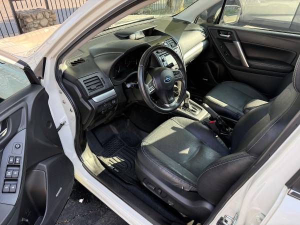 For sale is my nearly stock 2015 Subaru Forester XT Touring in Satin White Pearl. It is the top of the line model with all available factory options including Eyesight-related safety upgrades, premium Harmon Kardon sound system, and full leather. Engine is the 2.0L Turbo (FA20 engine) which is shared with the WRX and is much more reliable and powerful than the standard Forester engine (250 hp and 258 lb ft torque). The exterior has the facelift introduced in 2015 and has some minor mods listed below.