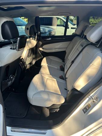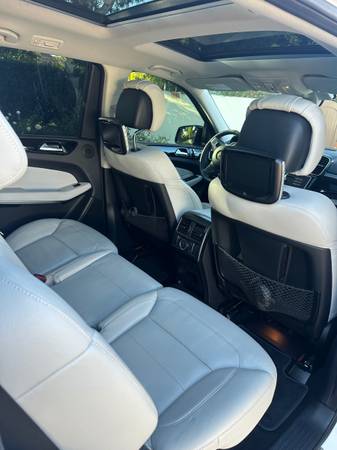 Excellent condition white Mercedes gls 550. Lady driven, immaculate condition. White leather seats, power chairs. Front seats have heat and cooling options. Tv screens with headphones. Can have third row seats or larger trunk space. Optional sun screens for middle seats. Fast and comfortable car to drive.