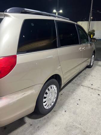 Selling my TOYOTA SIENNA 2007. SUPER CLEAN CLEAN TITLE, SMOG READY . 135,000 mileage. 6 cyl automatic. NO MECHANICAL ISSUES. RUNS EXCELLENT. YOU BARELY CAN HEAR THE ENGINE RUNNING. A/C. VERY COLD. HEATER, ORIGINAL PAINT, a COUPLE OF SCRATCHES NORMAL FOR THE YEAR. OTHER THAN THAT. GREAT VAN . Plates till next year 2026. $4950 dollars. PlEASE NO LOWBALLERS . WILL BE BLOCKED. INTERIOR VERY CLEAN .