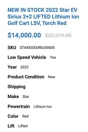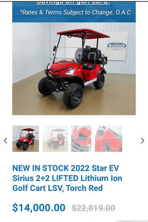 Selling a clean lifted 2022 Star EV Sirius 4 seater. Lithium-Ion. 51.2 Volt. 150AH.
