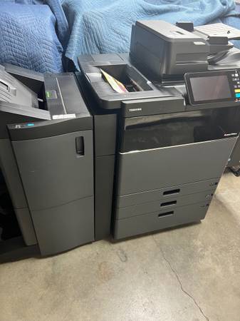 Low counter Toshiba eStudio 7506ac color copier in excellent condition with saddle stitch finisher and hole punch for this amazing price print speed 75 ppm in color 85 ppm in b/w fully loaded with...