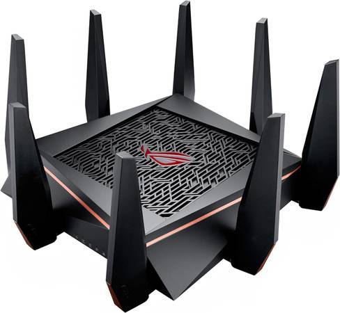 Selling my Republic of Gamers Router. Router is in excellent condition and working properly. It is a Tri-Band, so you can set up different WiFi networks to allow/limit access to certain users. This is a gaming router, so you can pair up with a gaming console or pc to get the best performance from your system. More details below. If listing is still posted, then it is still available. If you have any questions, please reach out and I'll respond as soon as possible.