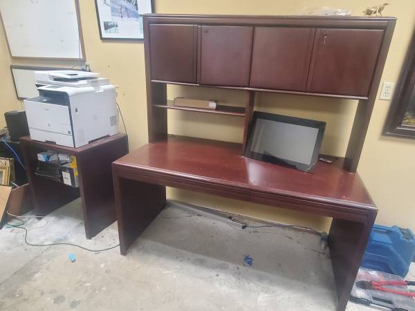 Clean Cherry Wood office Desk with locking hutch (1 lower keyboard drawer) in excellent condition.. $100 OBO