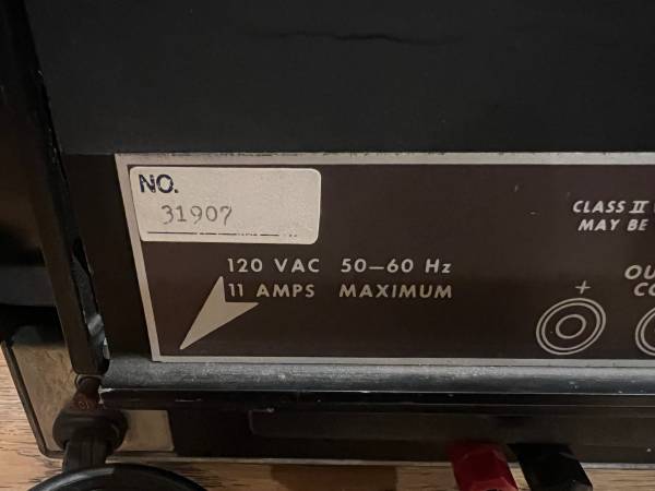 Accessory provisions for mounting on a standard 19 inch rack, an alternative front panel which includes two output meters, a cooling fan, and an alternative power transformer for international AC line voltages are available at additional cost.