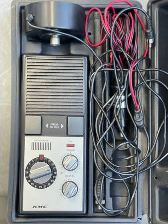 Portable CB with case. May use with magnetic antenna to put on roof of car if desired. Handles like a walkie talkie. Never used. Kept in car in case of emergency.