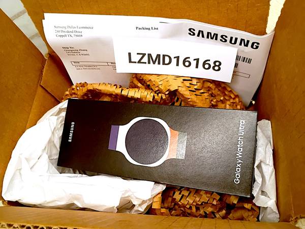 I bought this year and it's been sitting sealed in the box Samsung sent it to me and and I just opened up the outside shipping box to show you the brand new factory sealed watch inside.