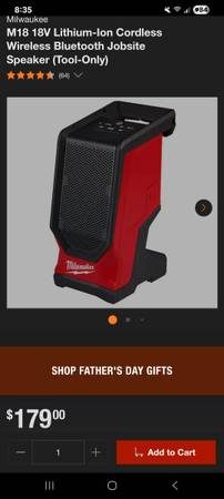 M18 Bluetooth speaker, AND Red Lithium XC 5.0 rechargable battery: $140 for the speaker alone $180 speaker with battery Both in original unopened packages