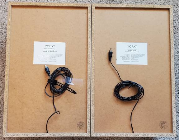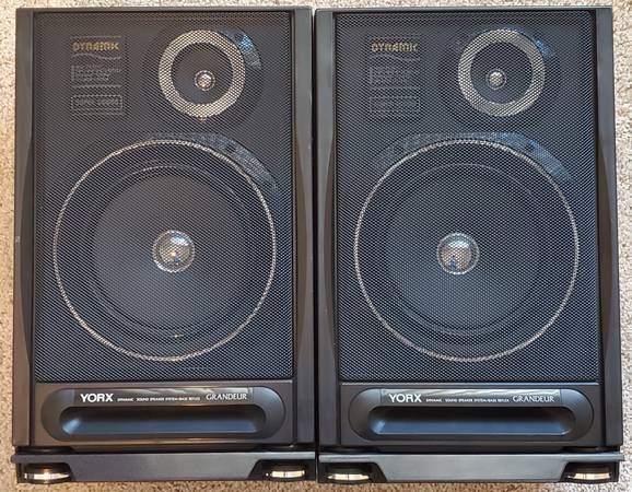 Dynamic sound speaker system with extra-bass reflex. RCA connections. Work with a stereo system we no longer have.