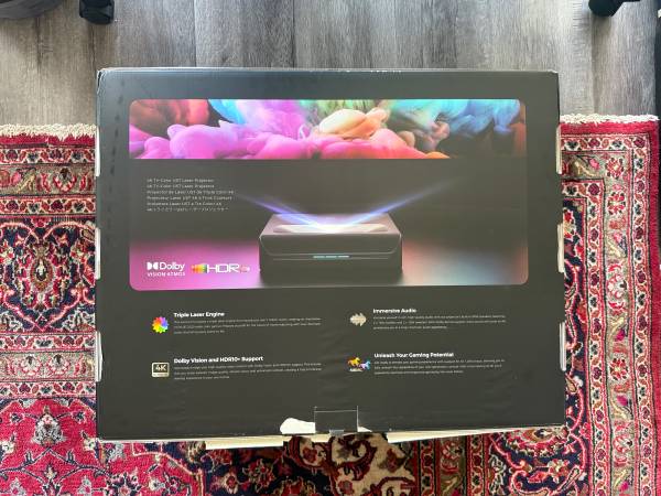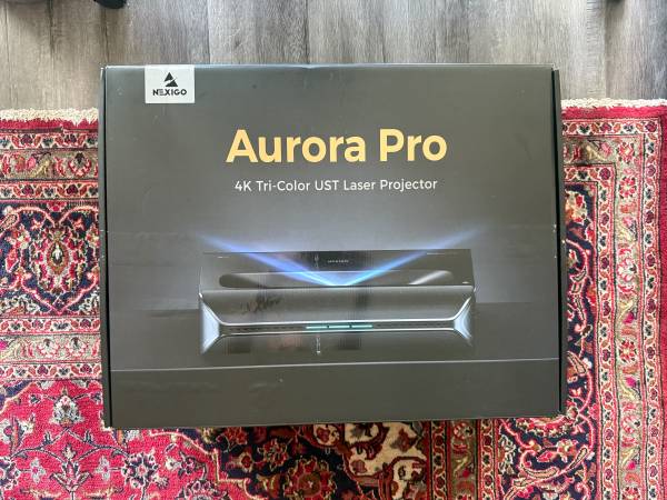 Amazing Nexigo Aurora Pro ultra short throw projector for sale. Picture quality and immersion is a game changer! Photos taken with an iphone to show actual picture quality. It is recommended to use an ALR or Fresnel screen and dark room for best experience. Only selling because just upgraded. Comes with box, remote, manual, power cable. All firmware up to date, projector has been factory reset and is ready to go!