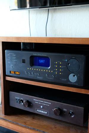 Made with high end black/dark charcoal brushed aluminum, this audio video receiver and processor boasts 7.1 Dolby Digital and DTX surround sound at 200 watts per channel! Dolby Pro Logic II, Dolby EX, DTS ES, DTS NEO:6. 24 bit DAC, and 24-bit/192-kilohertz Analog Devices digital-to-analog converters. This gets just as much clean power and sounds on par if not better than todays high end amplifiers and integrated all in one units. There's a reason Bob Carver has a cult like following in the hi fi audiophile world and this is a great example why. All firmware up to date, comes with working remote and IEC power cable. Retail $5500+ in the early 2000's. Price is firm. Thanks!