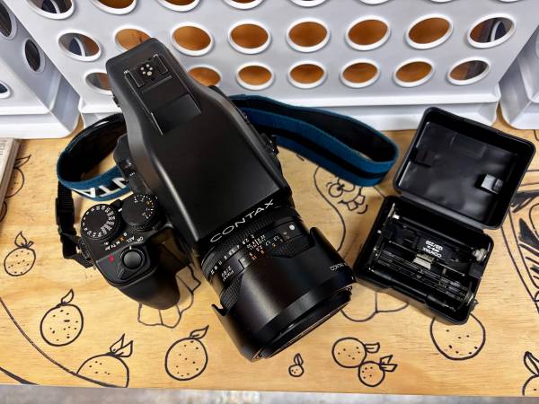 Contax 645 medium format film camera w/ Zeiss Planar 80mm F2 tested and working. SLR film camera. New battery. recently shot some pictures with it in the last two weeks and had them developed for you to see.