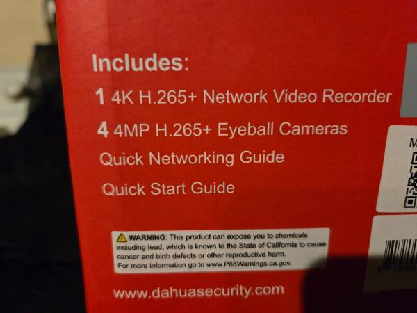 Brand new Dahua N444E42 security system. Includes four 4MP eyeball security cameras and 4K 2TB network recorder. Will meet at local Starbucks. $250 obo - text for quickest response. Chris