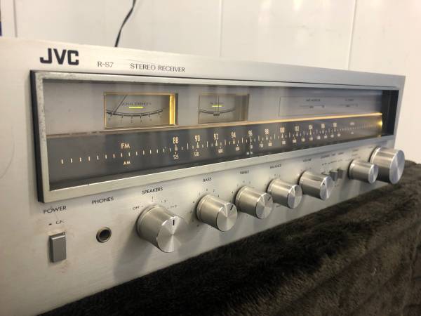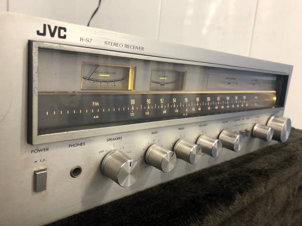 Fully-Functioning, Super-cool, Vintage 1970’s JVC R-S7 50watt AM/FM Stereo Receiver with Silver Brushed-Aluminum Faceplate and Turntable, Tape and Aux Inputs.