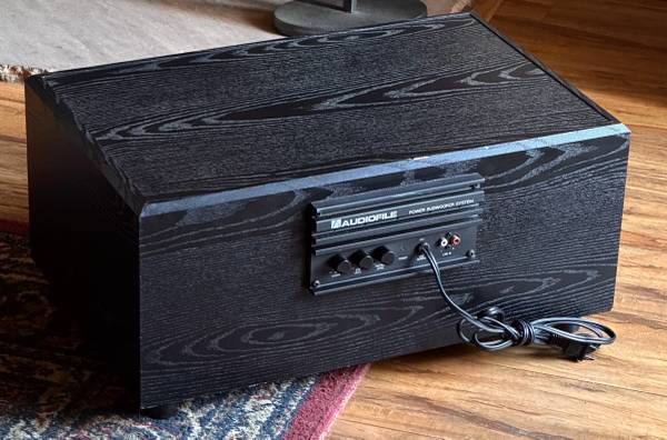 Can’t find any information on this one. A unique flat coffee table style powered subwoofer with dual 6.5” downfiring woofers - see last picture for how it appears in its setup. Bass is tight and well controlled, meant for moderate rooms. Woofer drivers are in fabulous shape and work without issues. In addition to crossover and sub volume, also has a unique mid-range volume on the control panel. Cab is heavy, Expect age related imperfections to cabinet. Cab measures 22”x14”x9”