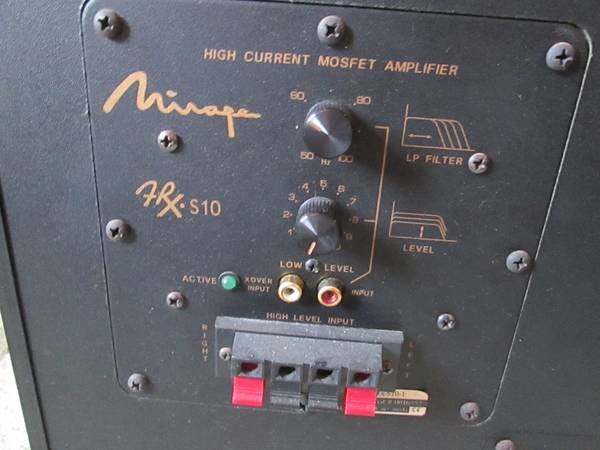 Mirage is one of a quartet of Canadian companies that produce speakers that outperform anything the rest of the world has to offer. The others are Energy, PS, and Paradigm. This 10" subwoofer is one of Klipsch''s best, puts out a lot of bass, and integrates well with almost any speaker set.