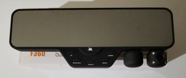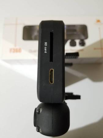 This is a dashcam for your car. It has large spring clips in the back that clips onto the rear view mirror. The dashcam has its own mirror so it replaces the rear view mirror when you clip it on. It has two cameras that can be rotated to point in the desired direction. This purchase includes a USB charger with three USB ports, a data cable, a power cord, a microSD card adapter (microSD card not included), and clips with adhesives for hanging up the power cord in your car. This comes with the original box.