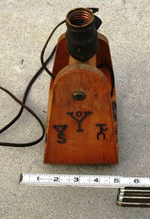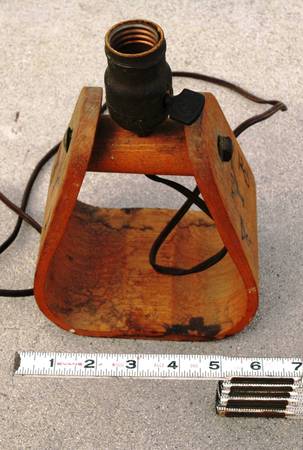 Three Western Folk Art Novelty Lamps Water pump 30 Dollars. Sorry, for the dust Stirrup 20 Dollars. Wood wedge Free if you purchase all three. Not sure it works Sorry, in good condition just dusty....