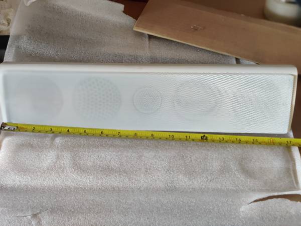 Home theater 5-pc speakers system in White. Center is Silver. Not used!!