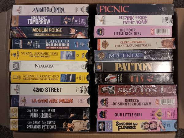 66 VHS tapes brand new and still sealed in original shrink wrap for $55 flat. Buy as is. Cash only, no negotiation.