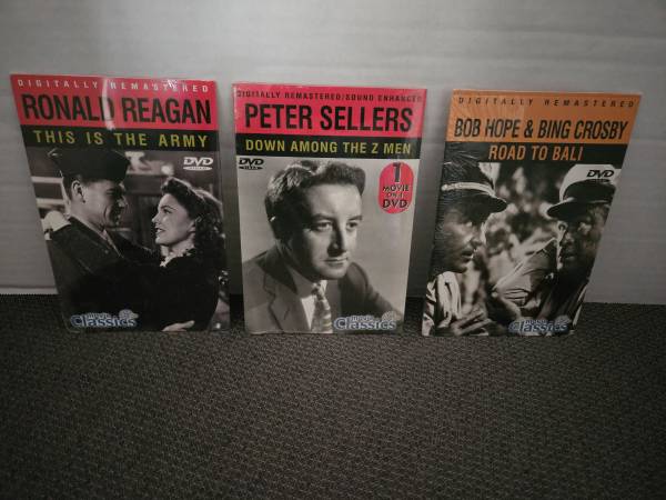 Lot of 3 DVD Movie Classics - Brand New Sealed - This Is The Army (Ronald Reagan), Road To Bali (Bob Hope & Bing Crosby), and Down Among The Z Men (Peter Sellers). All 3 are digitally remastered...