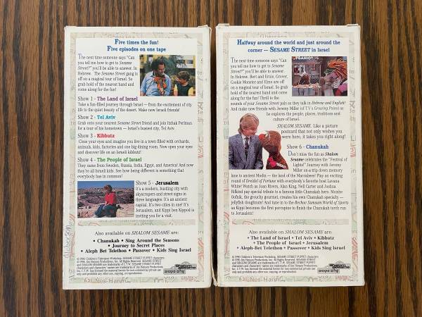 4 Shalom Sesame VHS tapes. Children’s Television Workshop/Jim Henson Production.