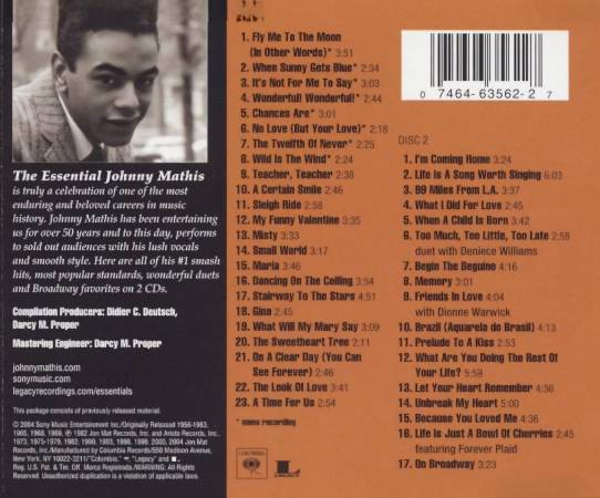 The Essential Johnny Mathis is a compilation album by American pop singer Johnny Mathis that was released in 2004 by Columbia Records. It includes several of his early hits such as "Chances Are" and "Misty", as well as a wide assortment of selections spanning more than four decades of his recording career.