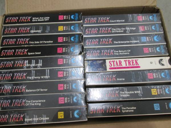 All VHS tapes have been stored in a cool, dark place and are in GREAT shape, including the cardboard sleeves. In fact, 12 out of 16 have NEVER been opened and are still in the original cellophane. My “Star Trek” Original Series episodes include:
