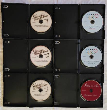 - 6 discs - stored in smoke/animal free environment Photos 1-2 - Skating Through Time V1-3 - Olympic Figure Skating “Greatest Performances in History” V1-2 - The Best of “Stars on Ice” V3 - SERIOUS...