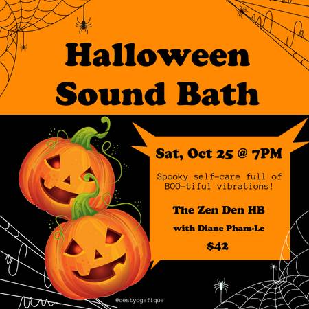 We’ll close with festive treats—pumpkin spice bites, chocolate dates + bubbly kombucha. Come cozy, add a touch of black + orange, and sink into some BOO-tiful vibrations.