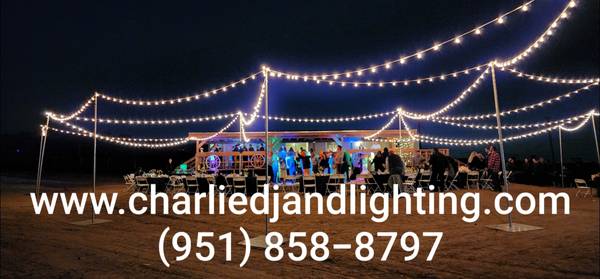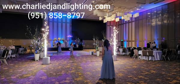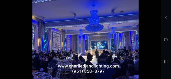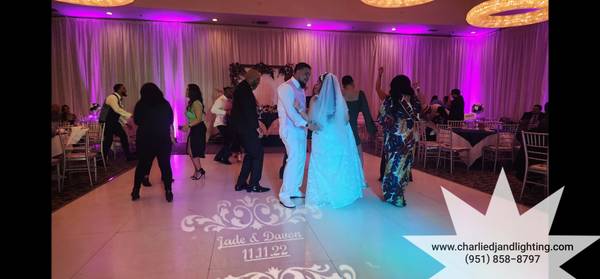 Carlos at Charlie DJ and Lighting is professional, on time, and responds to your needs. I selected Carlos at first because his price was reasonable and he was fully insured for our very picky wedding venue. He was on time for our initial meeting and came fully prepared with song lists and timeline outline. We were impressed with his lighting packages and decided to upgrade. It was well worth it. Carlos arrived early to set up and the lighting was beautiful. You can really see it in all of the pictures. He played our songs and jumped in as the MC when our coordinator didn't show up and we were behind in our timeline. Carlos was a HUGE factor in making our wedding day perfect. I really can't say enough. I will use Charlie DJ and Lighting Services over and over again. Thank you, Carlos.