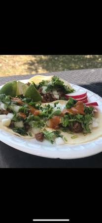 Leave it to Miggy! We specialize in authentic Mexican food: Tacos, quesadillas, rice, beans, salsa's, onions, limes, cilantro, and a variety of meats: (Carne Assad, Al pastor (pork), Chicken, Lengua (tongue), Carnitas, and more). All our food is made on the day of the event. We cook our meat on location to ensure freshness.