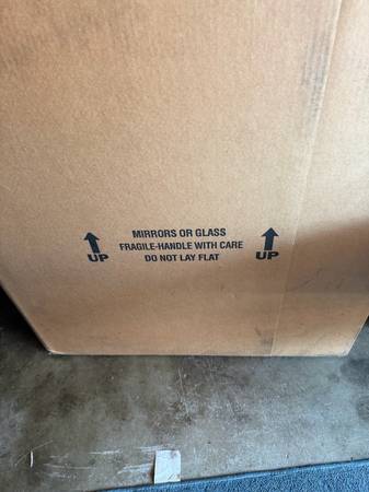 Brand new. In box. Brand is “Better Bevel” Round mirror with black frame.