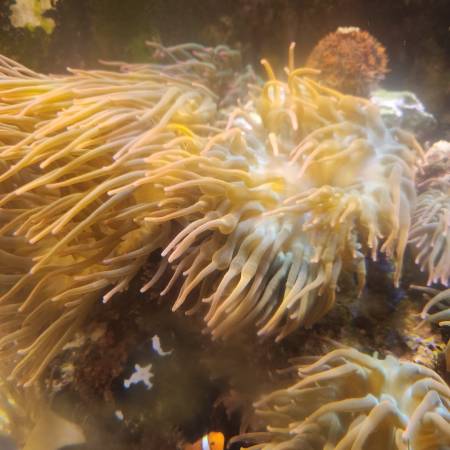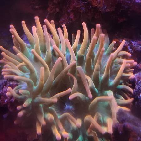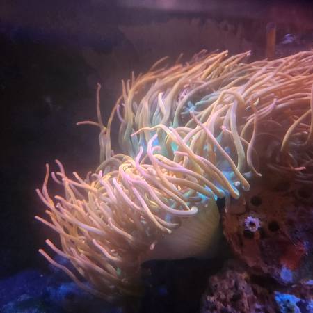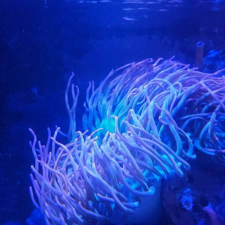 I have 6 decorative rainbow BTA anemones available from 3"-5" at $30.00 or 2 for $50.00. I also have larger ones up to 14" available from $40-60 depending on size. Coloration will vary depending on your lighting, location in tank and flow, as you can see in my photos. Saltwater fish tank. Rose Bubble Tip Anemones