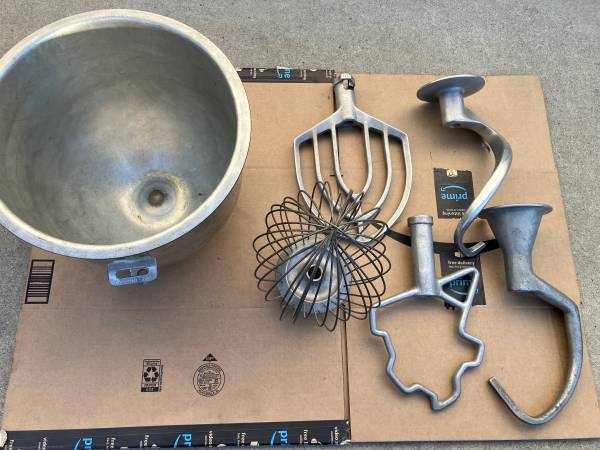 Works great and the grease was just replaced. Came out of a pizza shop. Includes the 12 and 20 quart bowls and each respective attachments.