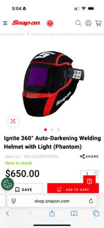 Selling this brand new welding helmet, has never been used. Snap on. DM for more details on it.