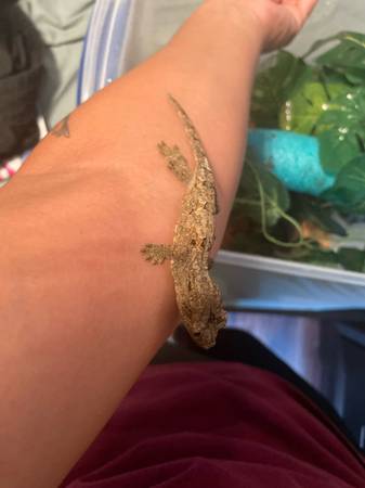 Selling female pine island chahoua gecko, 6 months old, eats well, captive breed, friendly, text for more info.