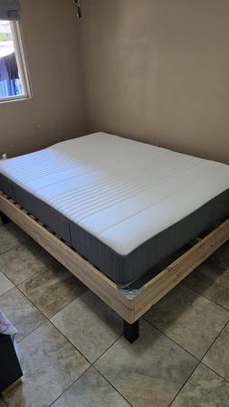 I AM SELLING THIS QUEEN BED WITH WOODEN FRAME. BOTH BED AND FRAME ARE IN EXCELLENT CONDITION. CONTACT DULCE - (spanish)