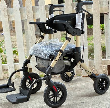 Walkers-for-Seniors, Rollator-Walker-with-Seat, Transport-Wheelchair-Lightweight-Foldable, Rollator Transport Chair with Brakes New 🆕