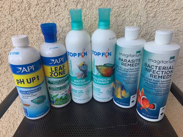 - Water treatments and medication. Opened but 80% full. All six bottles for $30