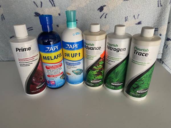 - Photo 3: Water treatments and plants supplements. Opened but minimum 3/4 full. All six bottles for $30