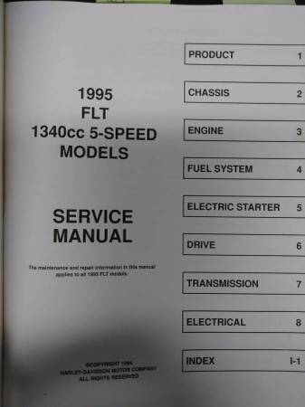 Harley Davidson Service Manual for 1995 FLT Models, Official Factory Manual