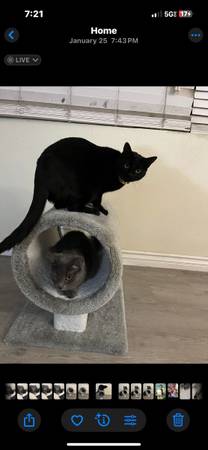 I sadly got evicted and I only have. 5 days left . I have asked everyone I know if they can take care of my cats for 2 months but everyone said they can’t. They are both 2 yrs old. The grey one is spayed and my black cat is not. They both have their vaccines and I have the paper work if needed. I have only 5 days left before I have to leave where I currently live. My grey cat is friendly but she likes to me more independent but will go to you when she wants to be cuddled or pet. My black cat is the opposite . She LOVESS attention and pets . Super sweet cats. I’m just hoping they go to a good home